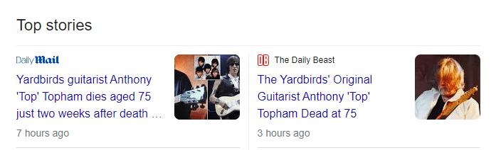 January 25, 2023 The Yardbirds guitarist Anthony ‘Top’ Topham dead aged 75 after dementia battle He was born on 7/3 and is dead on a 67 Sacrifice Date Numerology GIVE KNOWLEDGE AND SHARE THIS! Click to share on Facebook (Opens in new window) Facebook Click to share on Telegram (Opens in new window) Telegram Click to share on X (Opens in new window) X Like Loading... Related