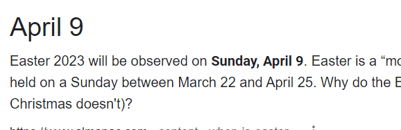 We get the Headline 68 days before Easter