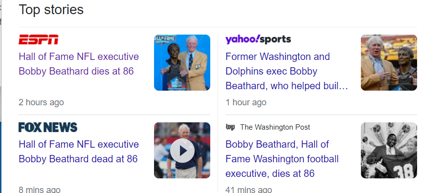 February 1, 2023 Hall of Fame NFL executive Bobby Beathard dies at 86 Dead on Jan 30th at age 86 38 years GIVE KNOWLEDGE AND SHARE THIS! Share on Facebook (Opens in new window) Facebook Share on Telegram (Opens in new window) Telegram Share on X (Opens in new window) X Like Loading... Related