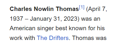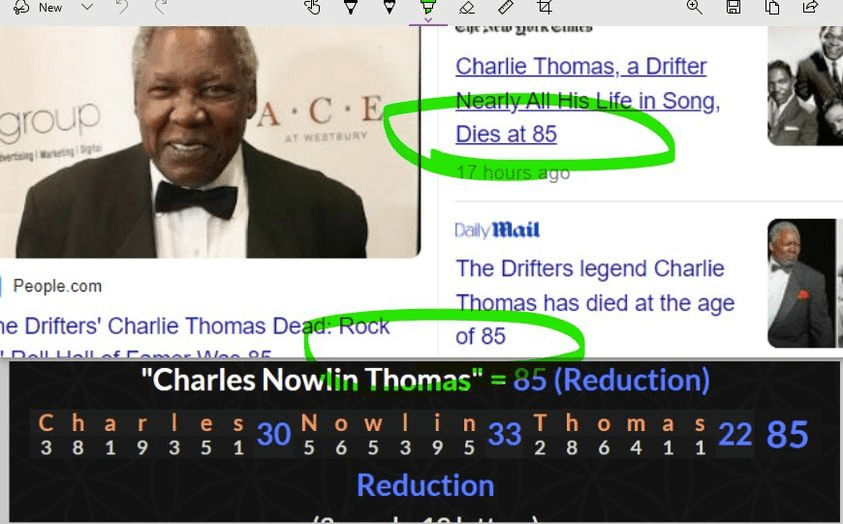 February 7, 2023February 7, 2023 Charlie Thomas dead in scripted Ritual from the Drifters dead 66 days before his birthday or a span of 67 GIVE KNOWLEDGE AND SHARE THIS! Click to share on Facebook (Opens in new window) Facebook Click to share on Telegram (Opens in new window) Telegram Click to share on X (Opens in new window) X Like Loading... Related