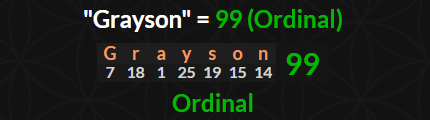 Grayson is dead 99 days after her birthday on the 36th day of the year.