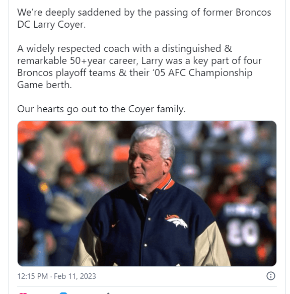 Broncos ex coach dead Feb 10th. This will be the Satanic Super Bowl for the 103rd Season.