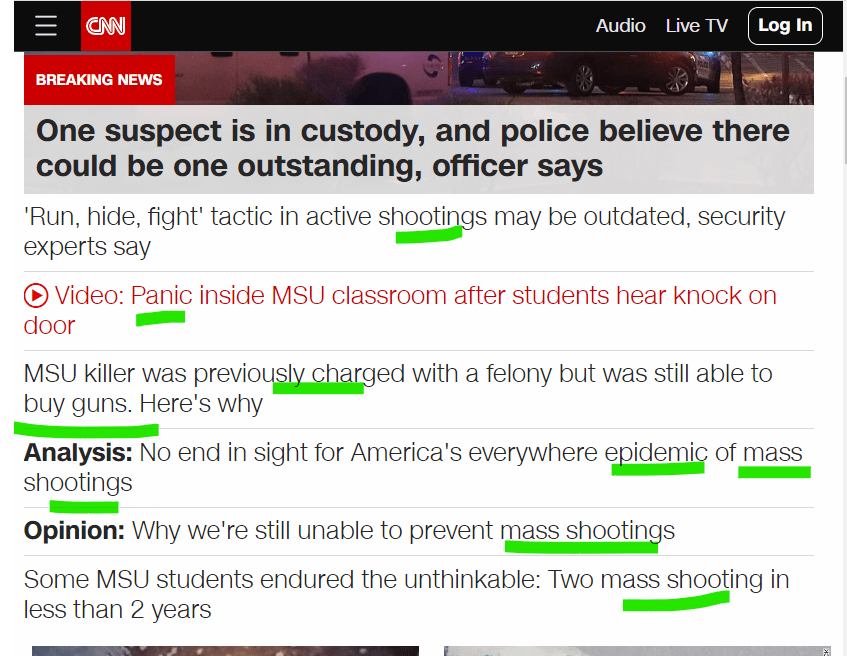 Just look at the headlines on CNN and the tweets demanding Pew Pew Control