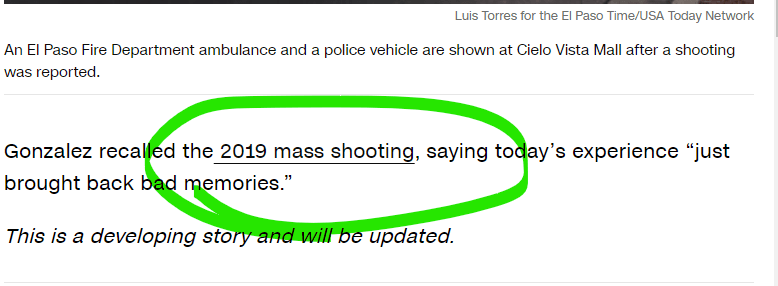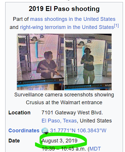 The El Paso shooting of 2019 happened on the 215th day of the year. Now another shooting in El Paso on 2/15. What a joke! Much love Amy!