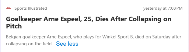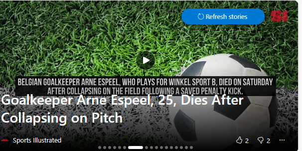 February 15, 2023 Goalkeeper dead at 25 GIVE KNOWLEDGE AND SHARE THIS! Share on Facebook (Opens in new window) Facebook Share on Telegram (Opens in new window) Telegram Share on X (Opens in new window) X Like Loading... Related