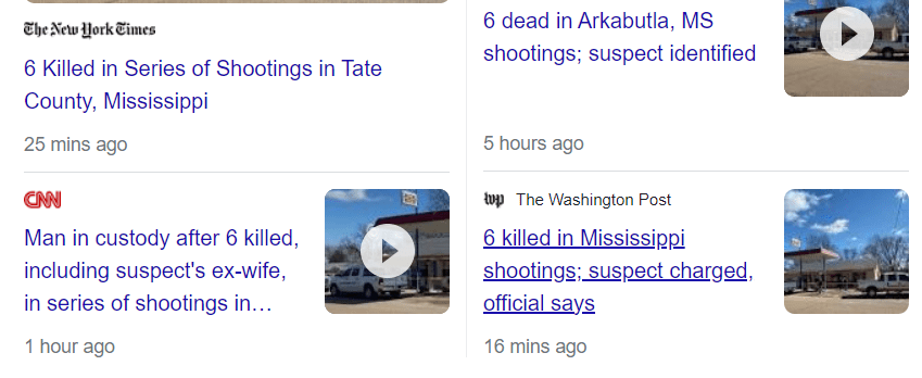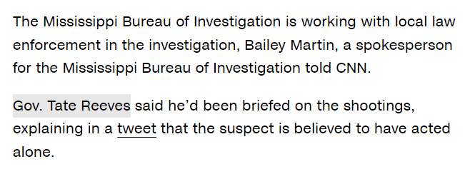 February 17, 2023 6 killed in series of shootings in Mississippi. Another Governor yet the same number game. Scene in the media is a gas station named PURE 109 days from Gov. Birthday 34 days from his anniversary of taking office GIVE KNOWLEDGE AND SHARE THIS! Share on Facebook (Opens in new window) Facebook Share on Telegram (Opens in new window) Telegram Share on X (Opens in new window) X Like Loading... Related