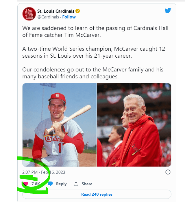 Cardinals post the TRIBUTE at 2:07, He died 207 days from DEBUT Anniversary.