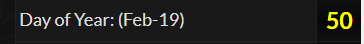 Dead on the 50th day of the year.
