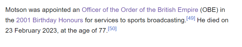 He died in his sleep the night of 2/22 to 2/23 He was famous for his MATCH OF THE DAY commentary.