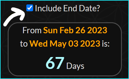 It is also a span of 67 days if you count the end date.