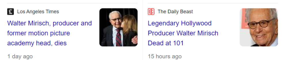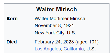 February 27, 2023February 27, 2023 Legendary Hollywood Producer Walter Mirisch Dead at 101 GIVE KNOWLEDGE AND SHARE THIS! Click to share on Facebook (Opens in new window) Facebook Click to share on Telegram (Opens in new window) Telegram Click to share on X (Opens in new window) X Like Loading... Related