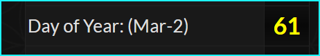 March 2nd will be 93 days from his birthday and 221 days from release anniversary and the 61st day. He is age 61