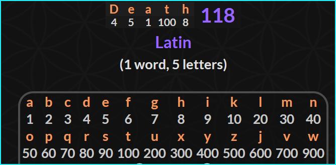 Death is 118 in a different cypher