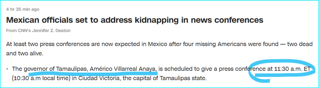 Mexico’s Governor of Tamaulipas and the President have a press conference March 7th at 11:30