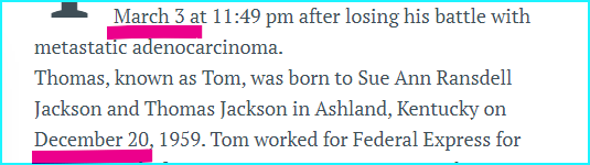 His death is put in the 3/8 Headlines, 79 DAYS after his birthday