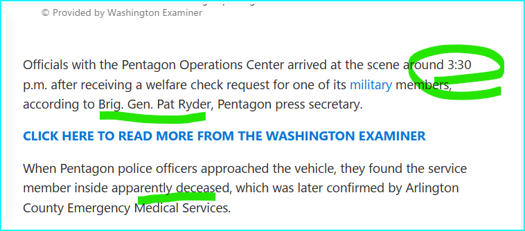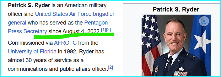 on 14/3, and 143 days before his anniversary of taking office, Gen Patrick Ryder is headline News announcing a death.