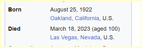 Age 100 on the kill date.