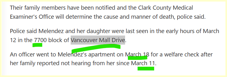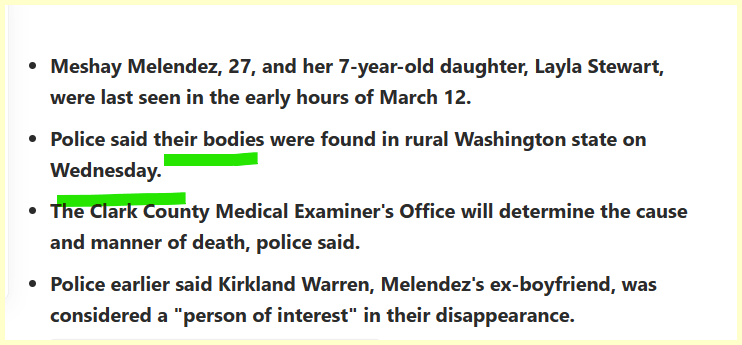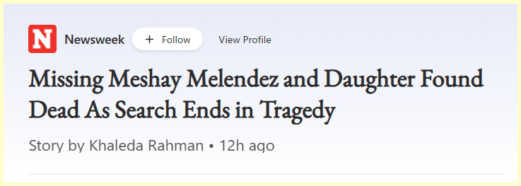 March 23, 2023March 23, 2023 223 Riddle for 22/3 …Missing Meshay Melendez found dead with Daughter on the 7700 Block GIVE KNOWLEDGE AND SHARE THIS! Click to share on Facebook (Opens in new window) Facebook Click to share on Telegram (Opens in new window) Telegram Click to share on X (Opens in new window) X Like Loading... Related