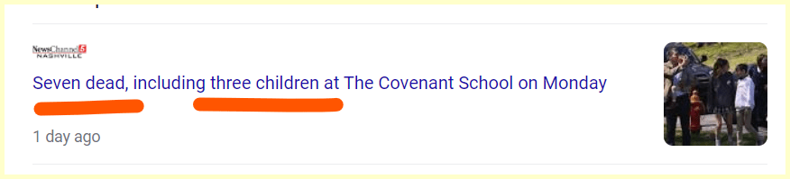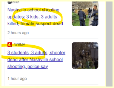 The Tennessean published the article at 3:11 then we have a shooting that starts at 10:13. This was big Chaos Headlines for 3/3 as well. This shooting was also coded with 33 connections in the headlines.