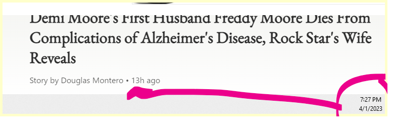 April 1st, Demi Moore revels her first Hubby died back on August 25th