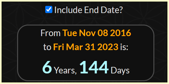 It has been 6 years and 144 days since the election for Trump and Clinton