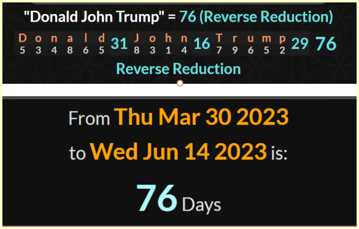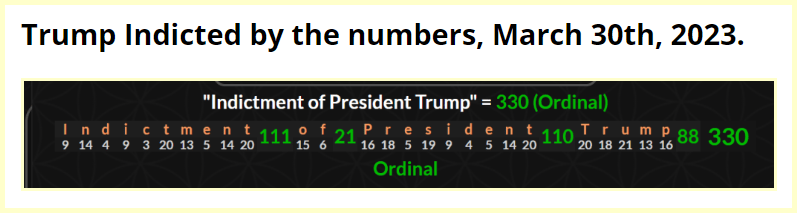 April 1, 2023April 1, 2023 More Trump Drama Indicted 76 days from his Birthday Expected arrest is 72 days from His Birthday GIVE KNOWLEDGE AND SHARE THIS! Click to share on Facebook (Opens in new window) Facebook Click to share on Telegram (Opens in new window) Telegram Click to share on X (Opens in new window) X Like Loading... Related