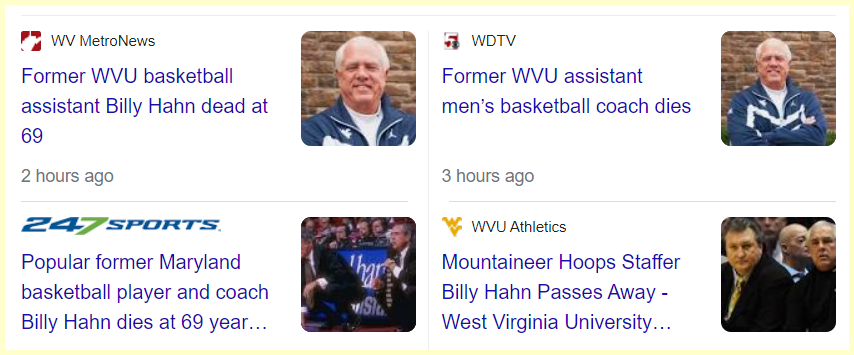 April 7, 2023April 7, 2023 Assistant coach Billy Hahn has died at the age of 69 Dead on April 7th Dead at age 69 and 76 days from his birthday GIVE KNOWLEDGE AND SHARE THIS! Share on Facebook (Opens in new window) Facebook Share on Telegram (Opens in new window) Telegram Share on X (Opens in new window) X Like Loading... Related