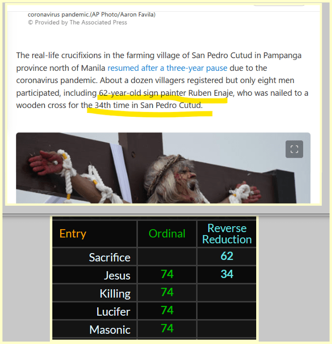 on April 7th 7/4 He is nailed to the cross for the 34th time