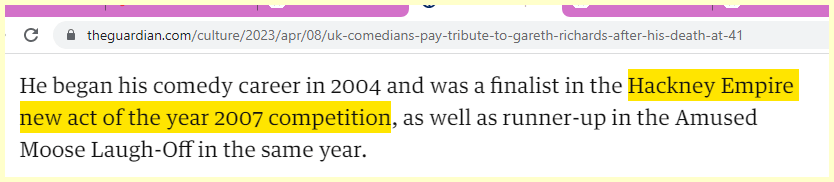 Got His start with Hackney Empire ….