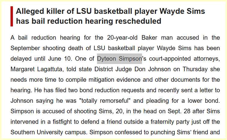 Simpson is accused of shooting Sims, 20, in the head on Sept. 28, 76 days from his birthday