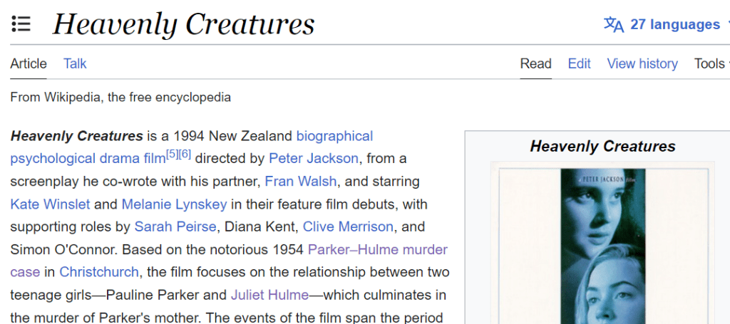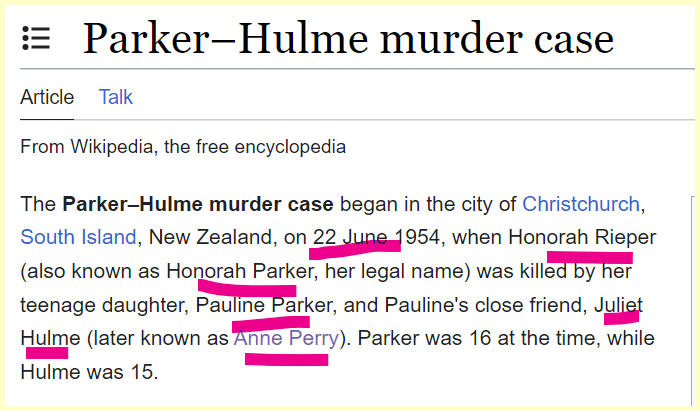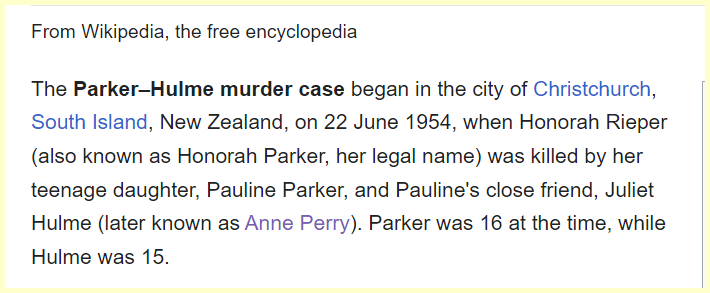 The name of the case is Parker Hulme Murder Case and she dies on the 100th day of the year