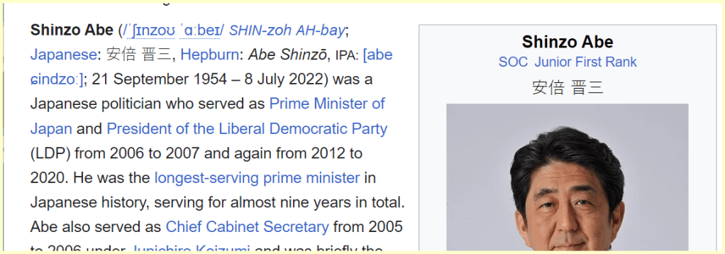 We are 84 days from the anniversary of when Abe in Japan was assassinated