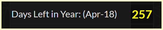 230 days after his Birthday. He turned 62 and 107 days from his anniversary of taking office and on the day leaving 257 days left in the year.