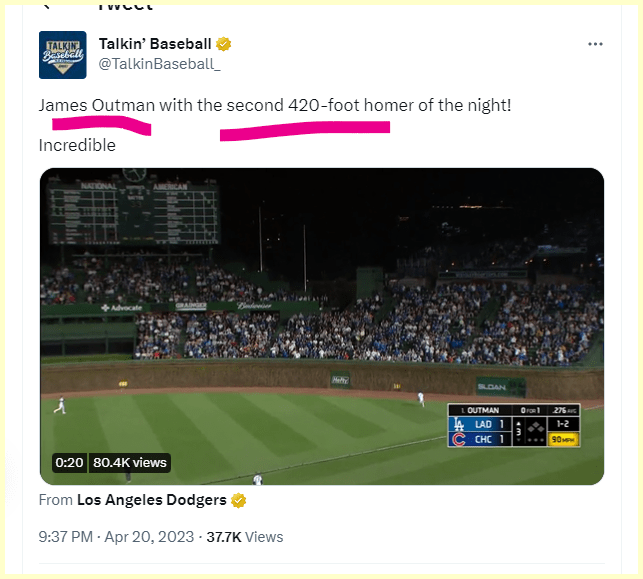 April 20, 2023April 20, 2023 420 ft home run on 4/20 by 2 MLB players… GIVE KNOWLEDGE AND SHARE THIS! Share on Facebook (Opens in new window) Facebook Share on Telegram (Opens in new window) Telegram Share on X (Opens in new window) X Like Loading... Related