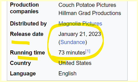 Released 1/21. She is dead on the day leaving 257 days and it ran for 73 minutes
