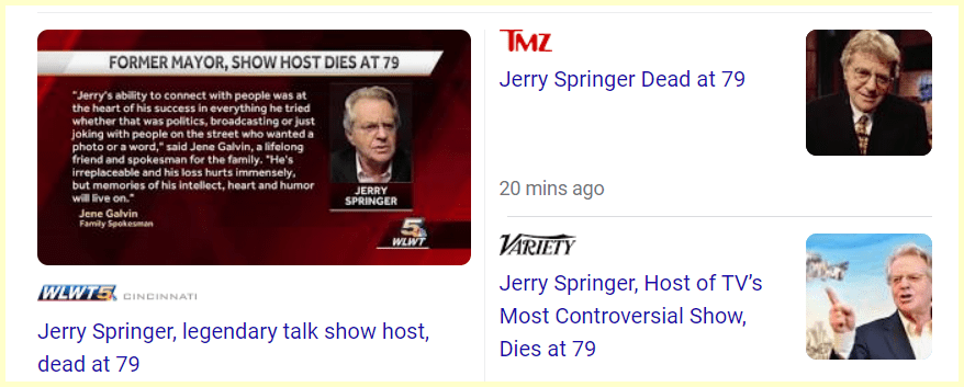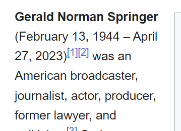April 27, 2023April 27, 2023 Jerry Springer Sacrificed 73 days from his birthday It is also a span of 74 days from his birthday GIVE KNOWLEDGE AND SHARE THIS! Share on Facebook (Opens in new window) Facebook Share on Telegram (Opens in new window) Telegram Share on X (Opens in new window) X Like Loading... Related