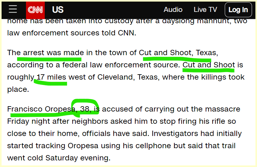 May 2, 2023May 2, 2023 Are you Kidding ME? Killer found in “Cut and Shoot, Texas” He is 38 Read original post in link below https://cracktheircode.org/2023/04/29/5-dead-in-texas-shooting/ GIVE KNOWLEDGE AND SHARE THIS! Share on Facebook (Opens in new window) Facebook Share on Telegram (Opens in new window) Telegram Share on X (Opens in new window) X Like Loading... Related