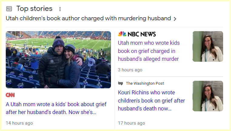 May 10, 2023 Did she kill him for the fame of a children’s book? Scripted News She is 33 years old He died on the 4th March 4/3 or 3/4 she gave him fentanyl GIVE KNOWLEDGE AND SHARE THIS! Click to share on Facebook (Opens in new window) Facebook Click to share on Telegram (Opens in new window) Telegram Click to share on X (Opens in new window) X Like Loading... Related