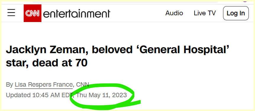 She is headlines today but died on 10/5 May 10th
