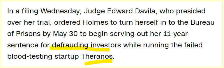 She will report to Prison 116 days after her birthday. She is charged for using her company Theranos to defraud millions of dollars from investors.
