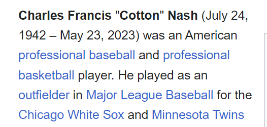 May 23, 2023 Cotton Nash, 1964 Lakers Draft Pick, Dies age 80. Dead 62 days or a span of 63 days from his birthday Dead 20 days from his draft date anniversary Wore number 44 GIVE KNOWLEDGE AND SHARE THIS! Share on Facebook (Opens in new window) Facebook Share on Telegram (Opens in new window) Telegram Share on X (Opens in new window) X Like Loading... Related