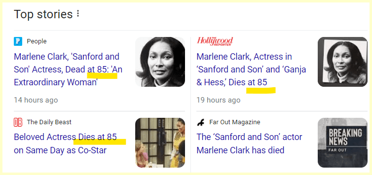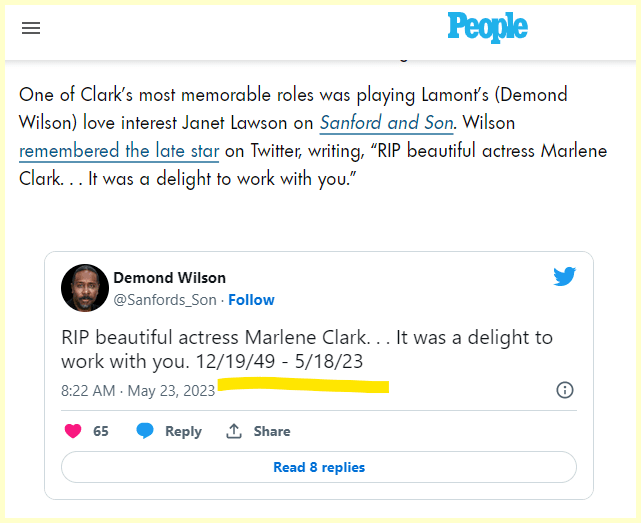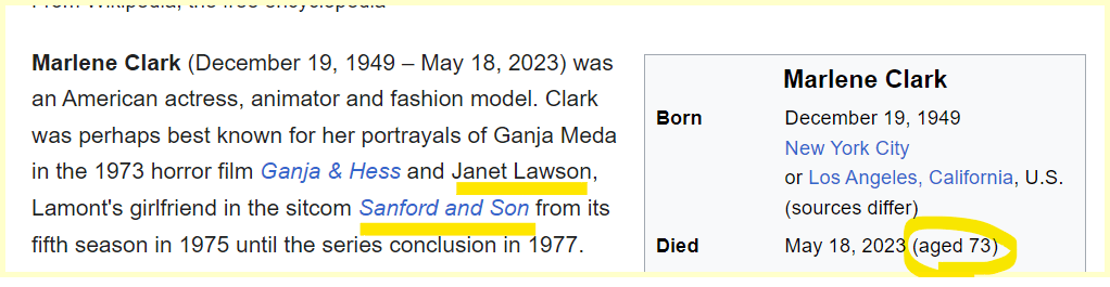 Marlene Clark, Sanford and Son Star, Dies at 85 or was she 73?