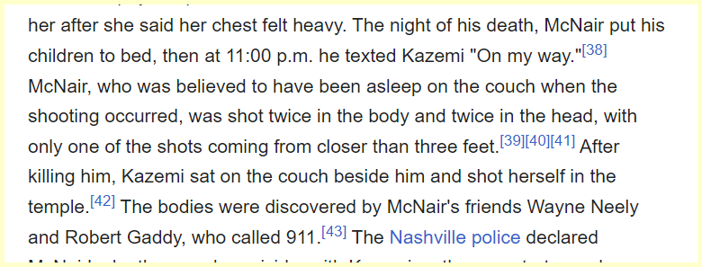 I remember the very date this occurred. Haven’t heard of Gematria then. But thanks to your great decode, I’m doubting that woman shot McNair. A woman would shoot a man in self defense, but more likely to stab him as a perp. Why would he text someone, then fall asleep?????