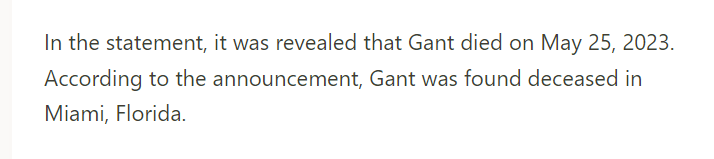 Gant passed away on May 25, only four days before his 26th birthday.