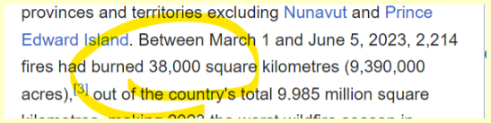 Wikipedia is making its History page by saying 38,000 sq kilometers burned between March 1 and June 5th