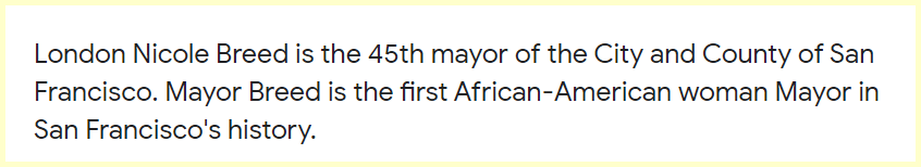 The Mayor of San Fran is this woman.. The first African American Mayor.
