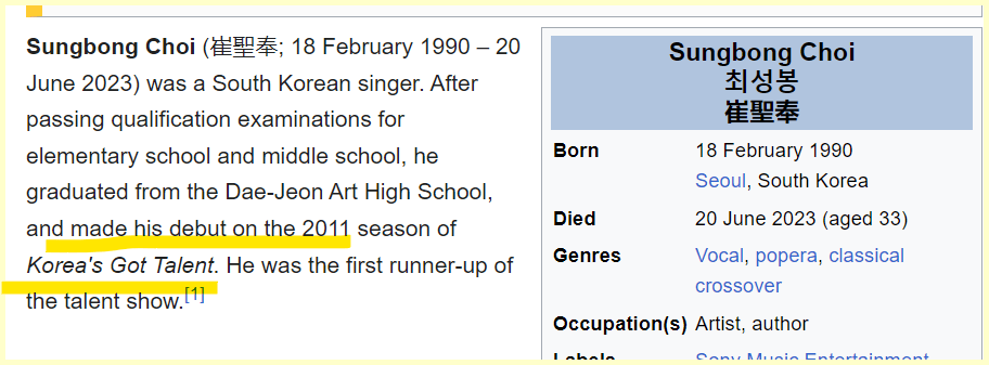 He became famous for Korea’s Got Talent