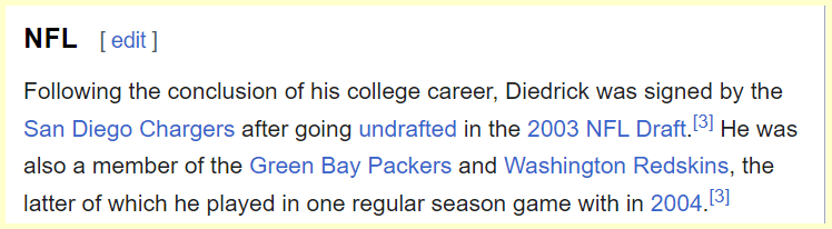 Diedrick was drafted by the Edmonton Eskimos in the third round, 24th overall, in the 2002 CFL Draft, April 25, but returned to school for his senior year.