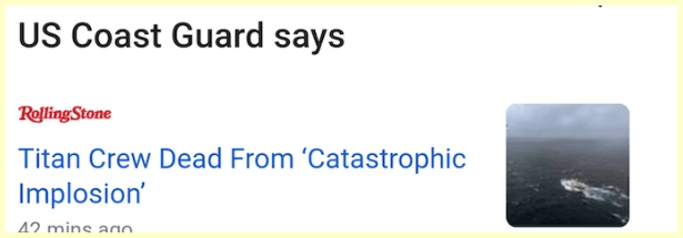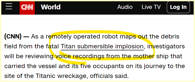 Debris found and all 5 are presumed dead. The “experts” are saying it is an “Implosion”