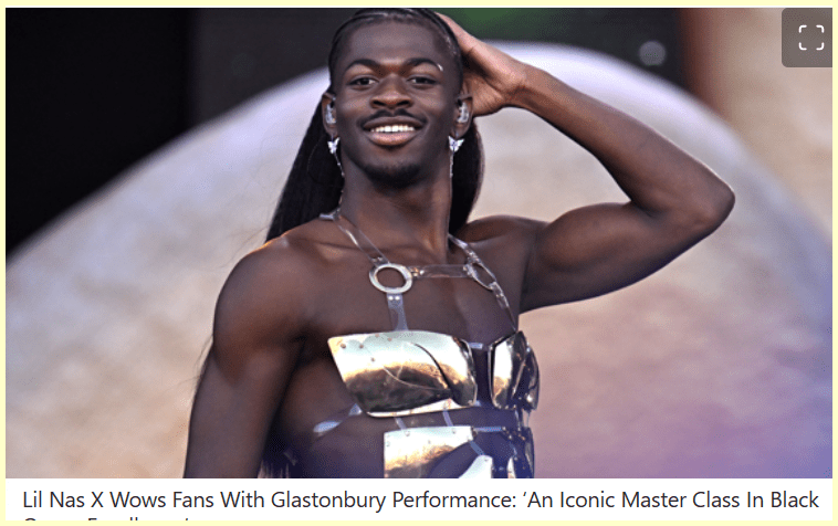 June 26, 2023 Lil Nas X Wowed Crowd at Glastonbury Festival. He WOWED the Audience 77 days from his birthday He made it big with the song “Old Town Road” GIVE KNOWLEDGE AND SHARE THIS! Click to share on Facebook (Opens in new window) Facebook Click to share on Telegram (Opens in new window) Telegram Click to share on X (Opens in new window) X Like Loading... Related